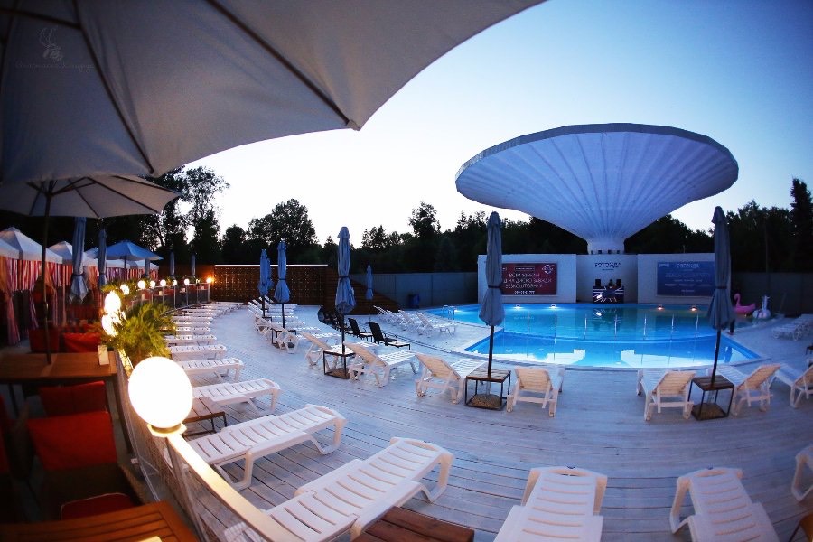 Про объект: первый в городе басейн под. открытым небом с рестораном и зоной загара.