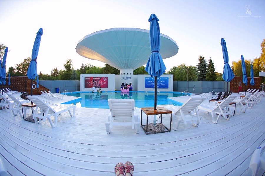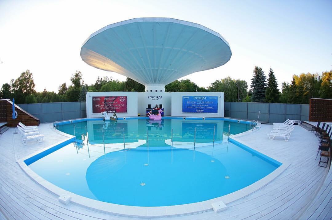 Недавний опыт реконструкции руин старой советской эстрады в центре Луцка под летний beach club с открытым бассейном.